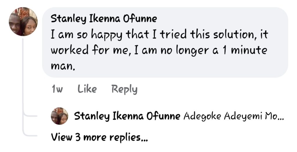 For a long time, I struggled with something that made me feel less of a man. My wife would lovingly persuade me to make love, but I always found excuses—claiming I was busy or tired. The truth was, I was embarrassed. Just two minutes into the action, and it was all over for me. I started avoiding intimacy altogether, knowing the impact it was having on our relationship.